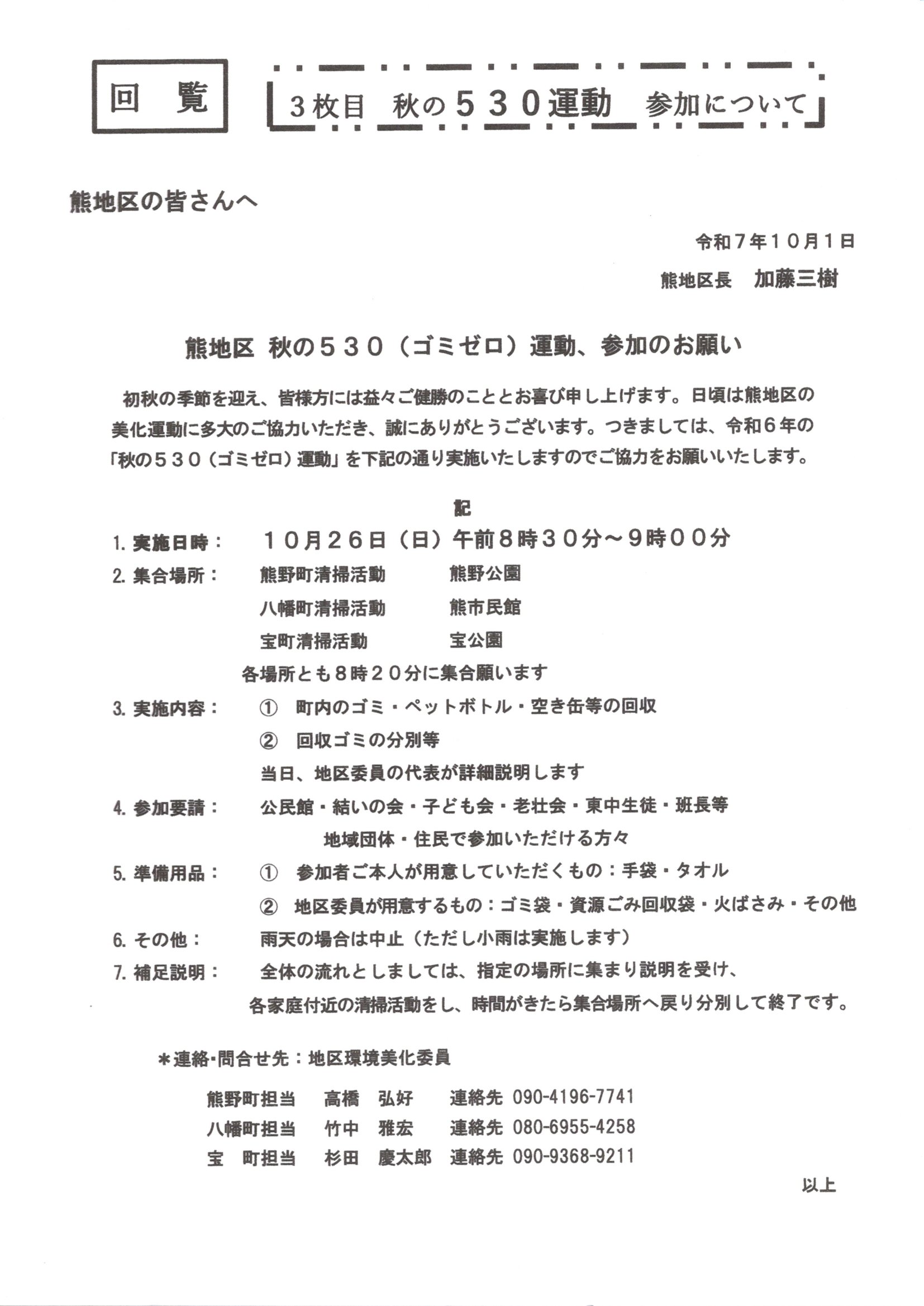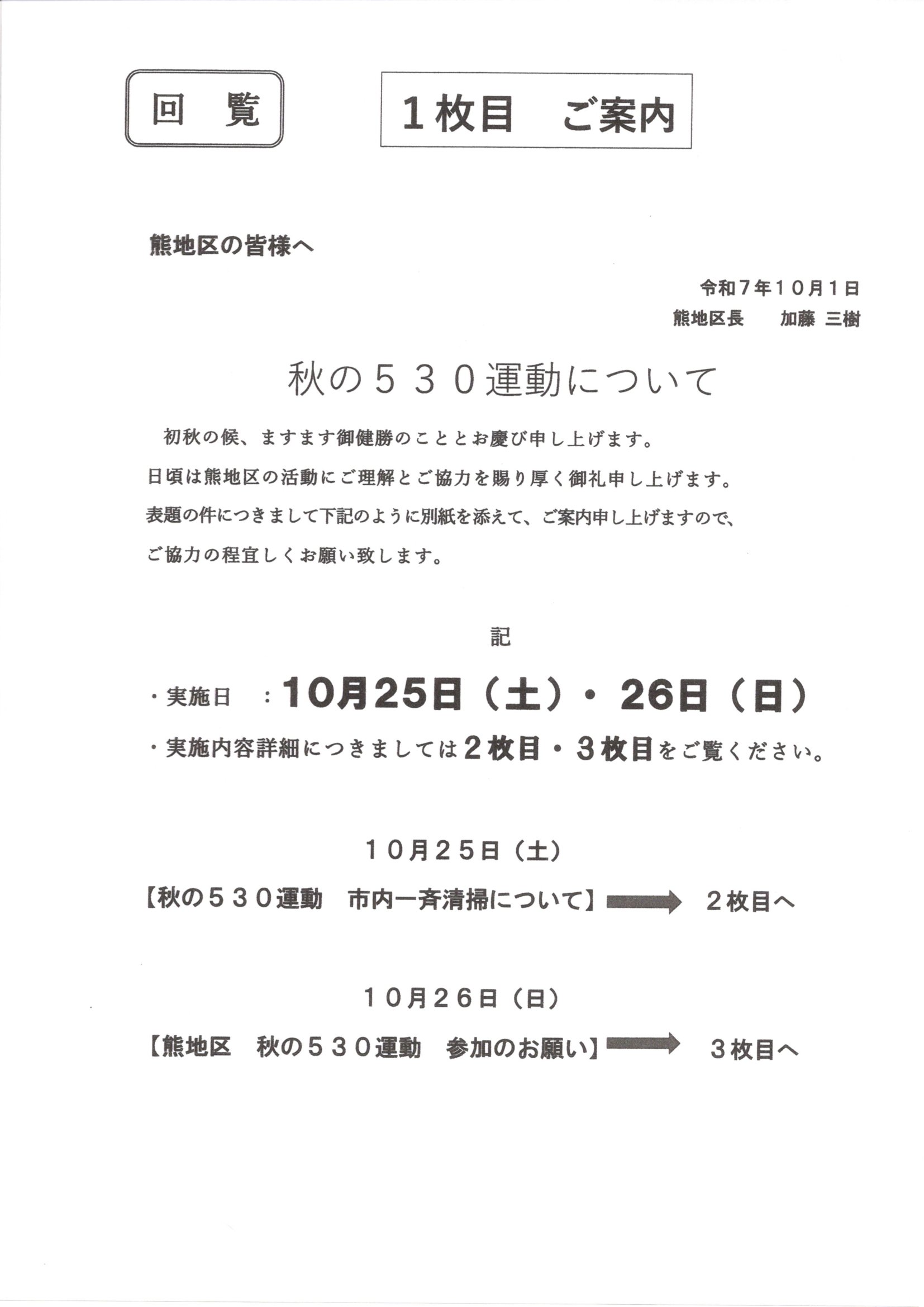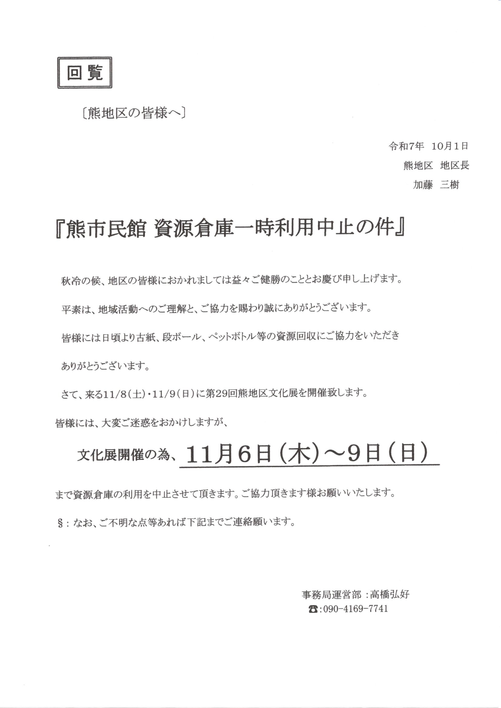 熊地区回覧板 令和7年 8月15日 回覧内容