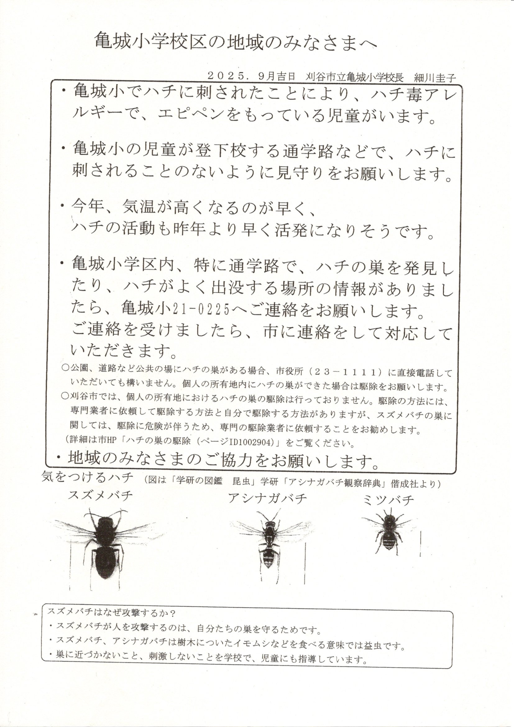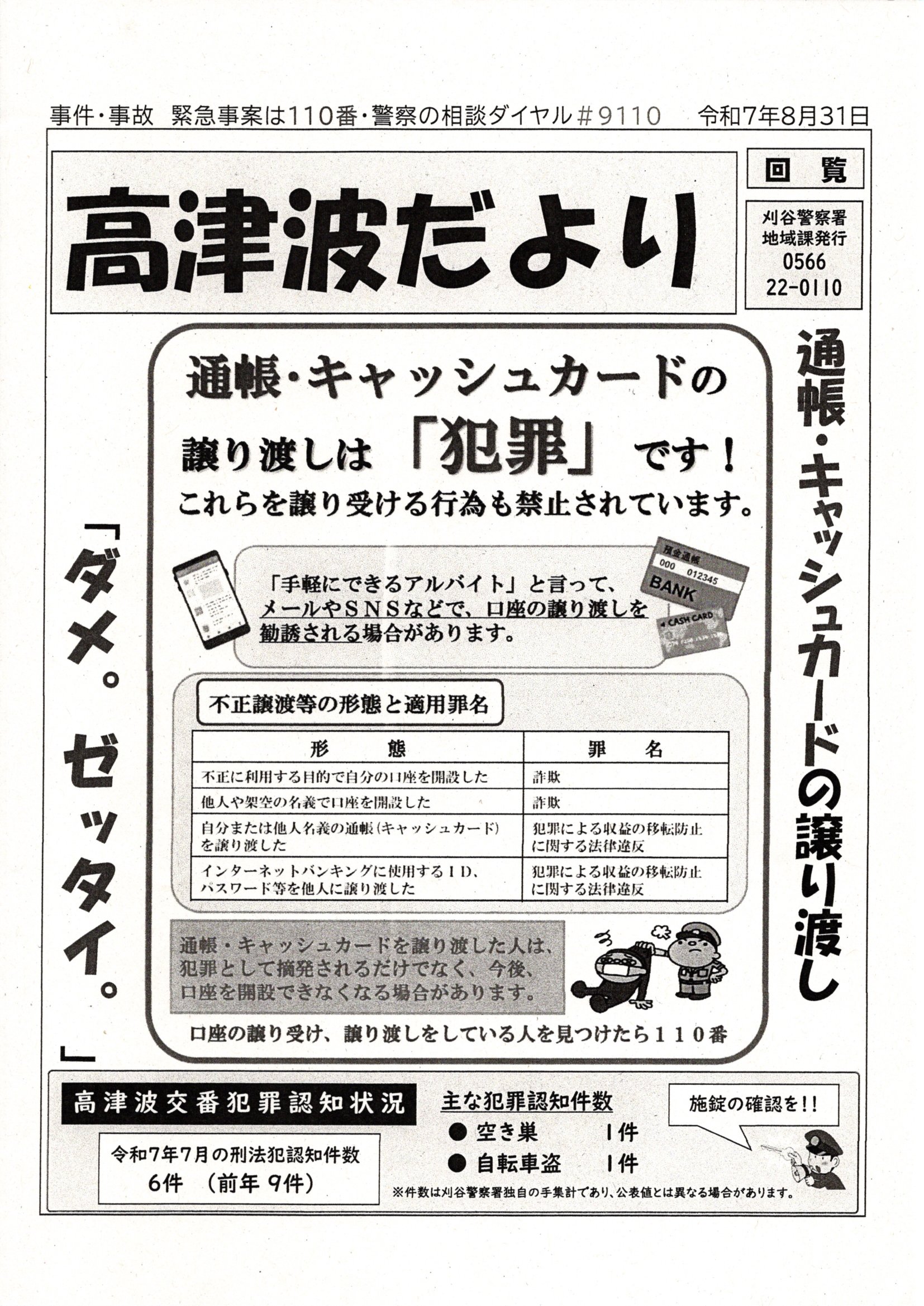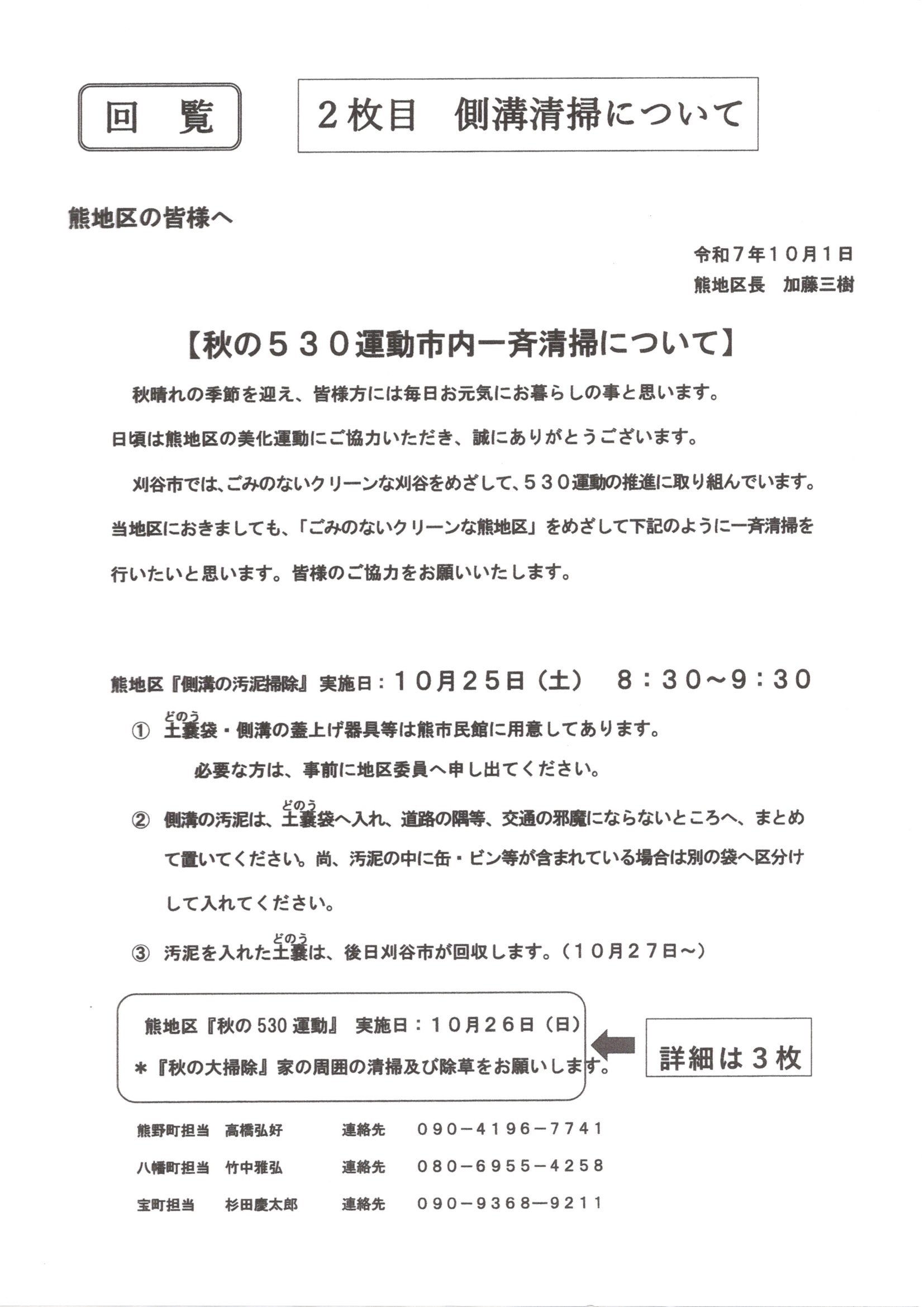熊地区回覧板 令和7年 8月15日 回覧内容
