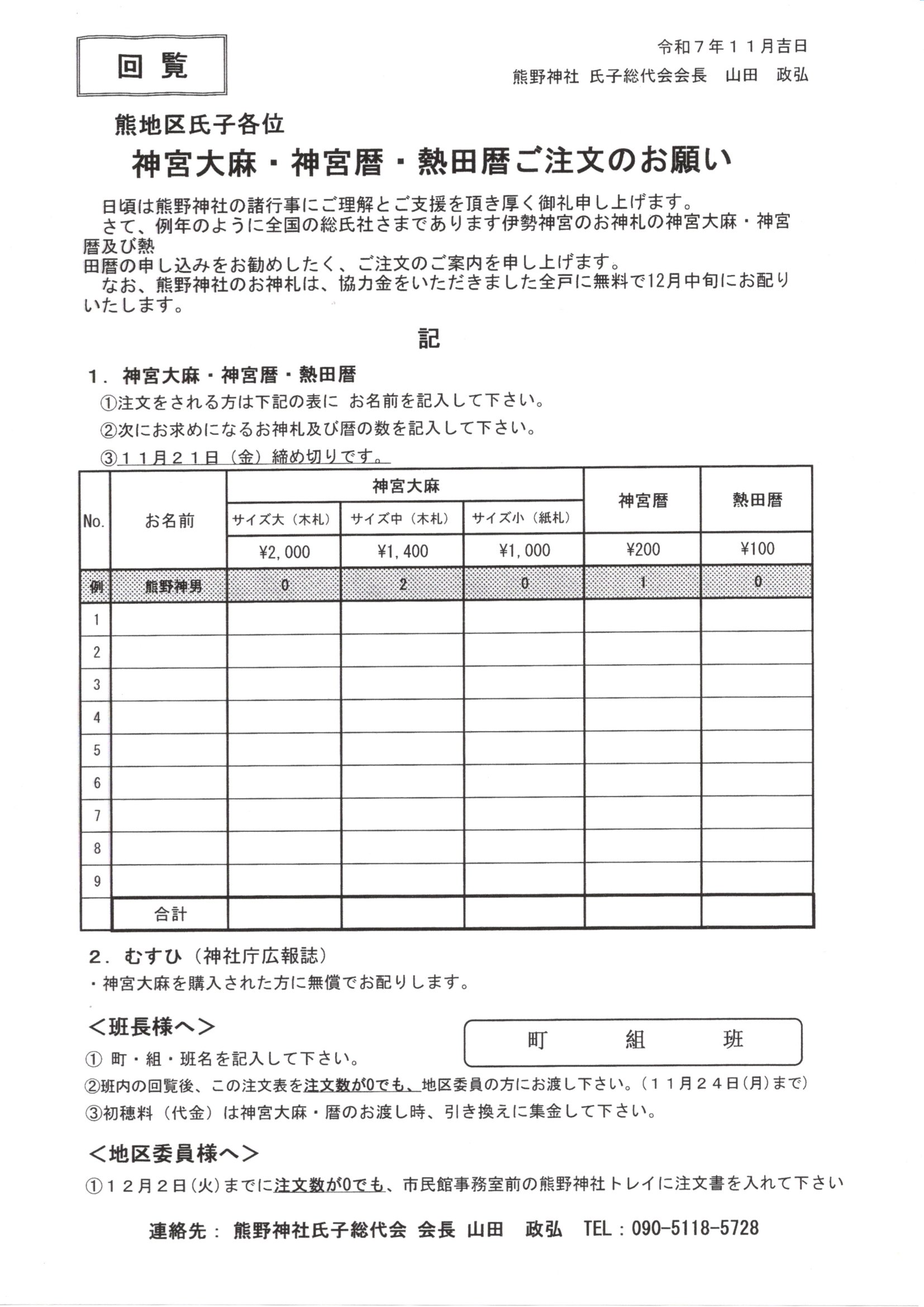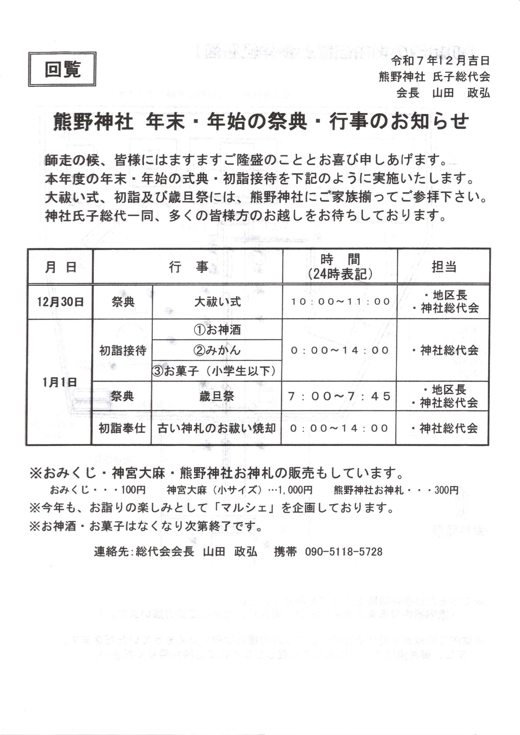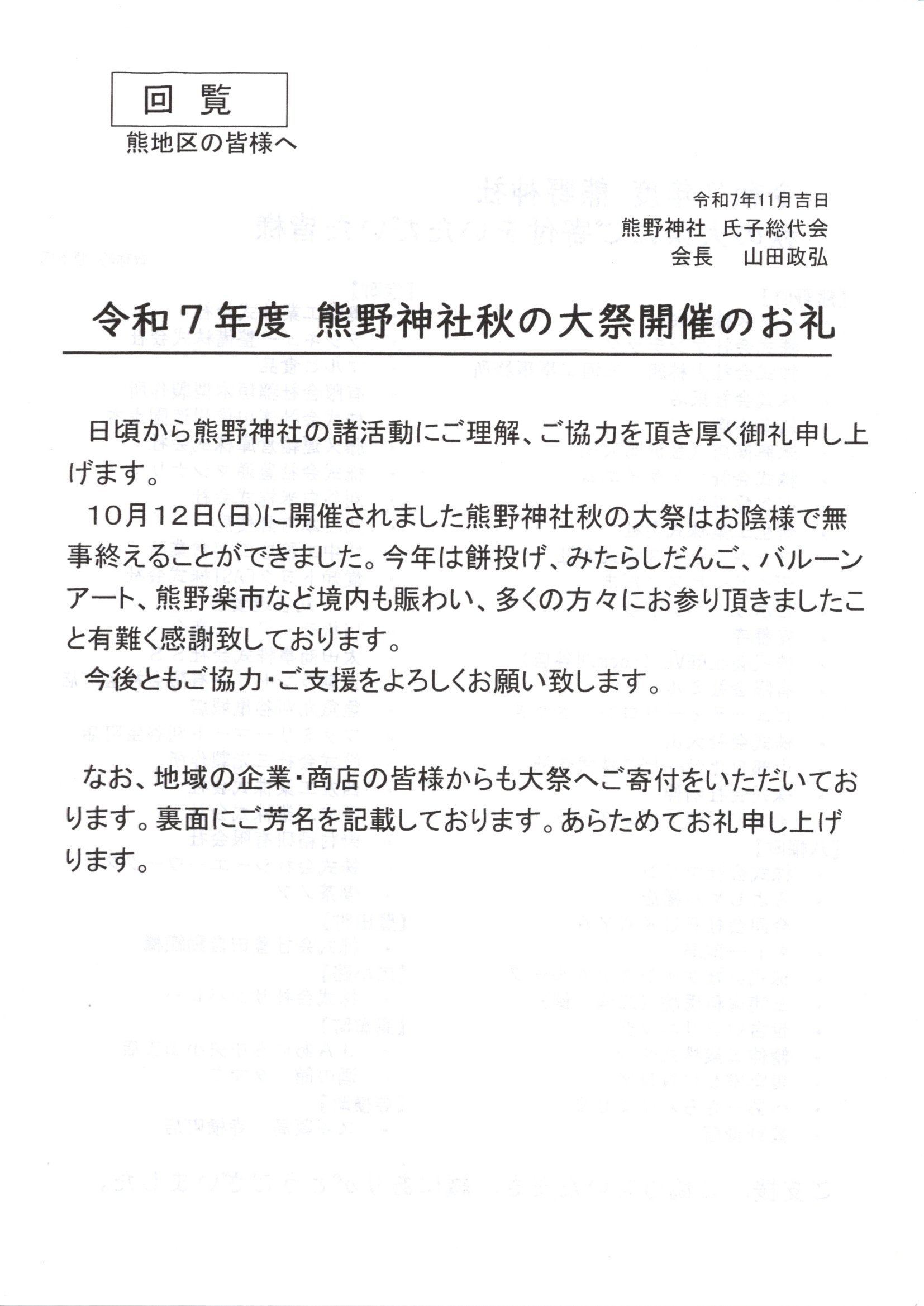 熊地区回覧板 令和7年 11月1日 回覧内容