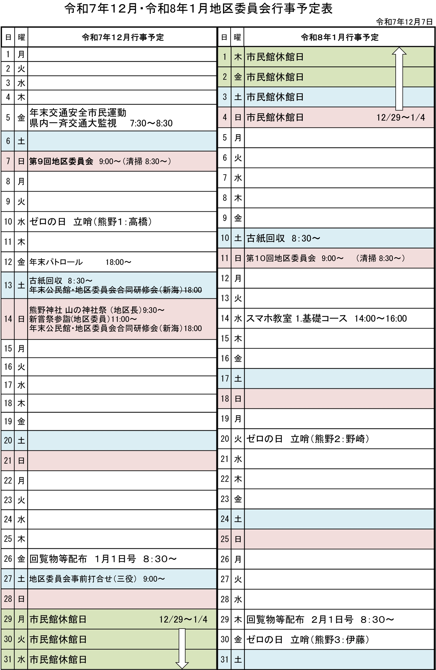 令和7年12月・令和8年1月 地区委員会 行事予定表