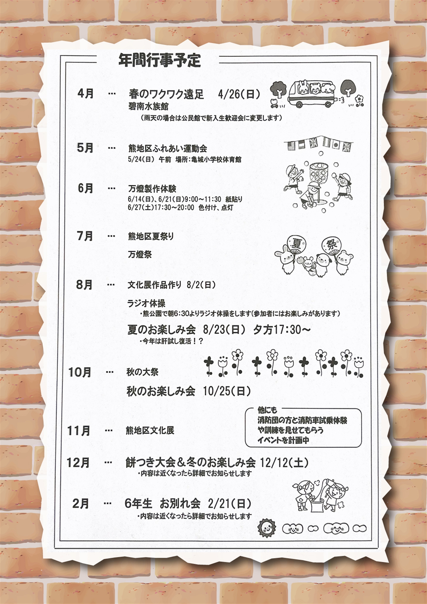 熊公民館 2ヶ月行事予定・令和7年度計画・役員名簿